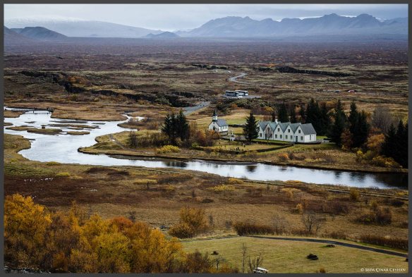 Þingvellir Ulusal Parkı (Tsingvetlir gibi bişey okunuşu:)) İzlanda’nın ilk kurulduğu, dünyanın ilk demokratik meclislerinden birinin olduğu yer. İzlanda genelde İskandinavya’dan kaçan ya da kovulan Vikinglerin kurduğu bir ülke olduğu için krallara pek tahammülleri yokmuş anlaşılan. İşte tam burda ilk meclislerini oluşturmuşlar ve ülkeyi dönem dönem burada buluşup ortak kararlar alıp bu şekilde yönetmişler. Burası hakkında bir başka enteresan bilgi de Amerika ve Avrupa kıtalarının kırılma noktasında yer alıyor oluşu. Buradaki dev yer çatlağının iki tarafı her yıl birkaç santim birbirinden uzaklaşıyormuş.